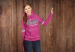 • Scuba shaped hood with contrast color drawcord on sizes M-2XL only